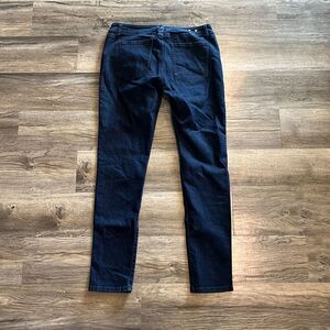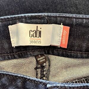 This pair of jeans is made by Cabi. They are a dark denim stretch skinny jean. Size 6 and in very nice pre owned condition. Smoke and pet free home.