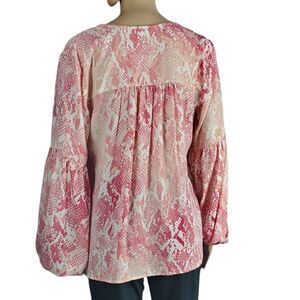 (RR) CAbi Pink & White Snakeprint Blouse, elastic sleeves, style 5708