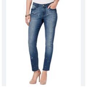 Cabi Skinny Ankle Jeans Sz 4 Great Condition Frayed hem Measurements taken laid flat: Waist:14” Rise:9” Inseam:26”