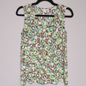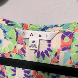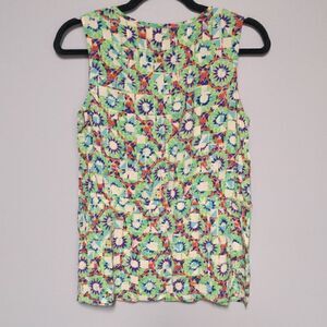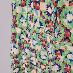 Green, cream, purple, red and blue design sleeveless blouse peplum style with split neck with strings