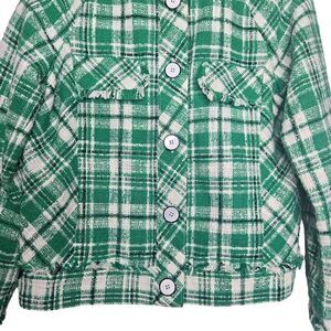 Cabi Sophia Green Plaid Tweed Button Up Library Jacket Size Small