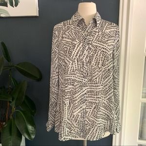 Item Description: beautiful b/w pattern/ longsleeve blouse/ split back/ button front