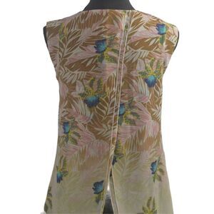 Cabi Tropical Print Parlor Top Blouse Sleeveless Split Back Bust 34"