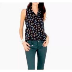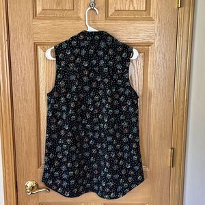 This top is made by Cabi. It’s a sleeveless button front floral and polka dot blouse with a banded bottom. Size medium and in wonderful pre owned condition. Smoke and pet free home.