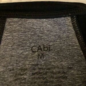 Great grey & black athletic top to wear on-the-go or at the gym by Cabi. Featuring a crew neck, long sleeves with mesh shoulders, with a lot of stretch for the perfect fit. Spandex, Polyester, nylon blend with moisture wicking to keep you dry. Length 27”, Width 18” pit to pit. Like new.