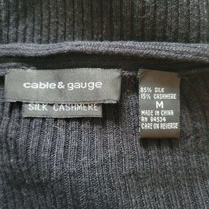 Cabie & Gauge Black Silk Cashmere Ribbed V-Neck Sweater Womens M
