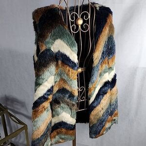 Super Cute! Soft faux fur fully lined multicolor v neckline herringbone vest with front pockets and top hook & loop close