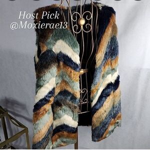 Cabin Core Multicolor Herringbone Faux Fur Vest