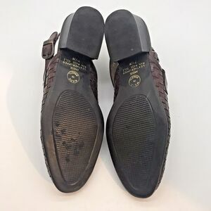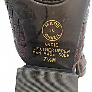 Cabin Creek Andie Sandals. Women's size 7.5M, Brown Woven Leather, adjustable Buckle and Stretch Heel Strap, Slingback Shoes, from Brazil. Quality Footwear.