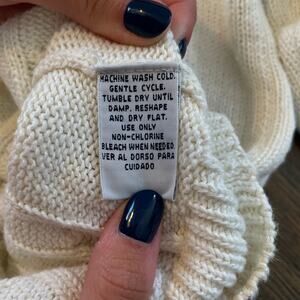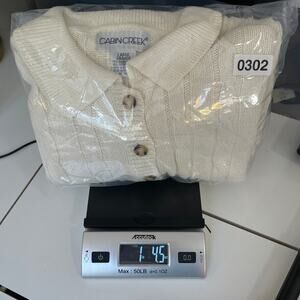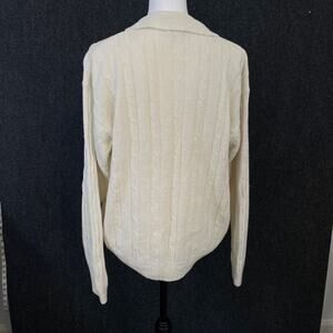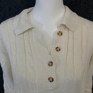 Vintage Cabin Creek collared henley sweater in cream. Features cable knit texture, four-button placket, and long sleeves. Women’s size Large.