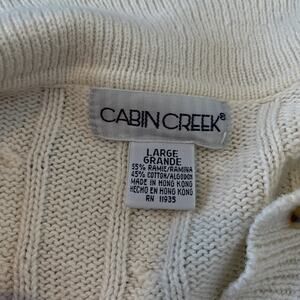 Cabin Creek Cream Cable Knit Sweater Large Vintage Henley 90s