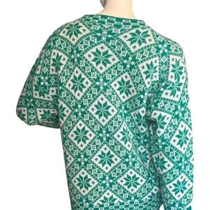 Cabin Creek Green/ white poinsettias pattern crew neck style sweater.