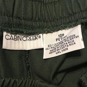Cabin Creek Size 10P Green Elastic Waist Pants with Front Pockets