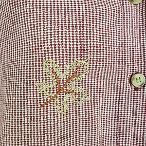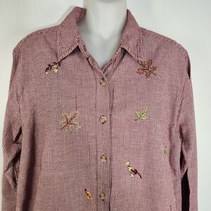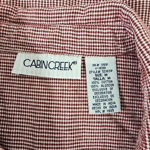 Cabin Creek Women Shirt Top Medium Red White Button Up Cotton Floral Embroidered