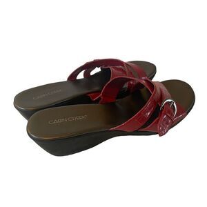 Cabin Creek Red Slip-On Rubber Sole Wedges w/Adjustable Strap & Pewter Buckle