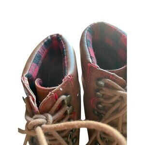 Cabincore ankle boots camel brown lace up tread botton plaid accent Size 6