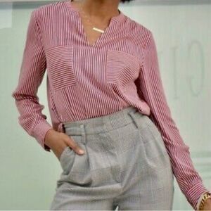 Cabi long sleeve, striped tunic that you can easily add to your work or casual wardrobe. Featuring front breast pockets, v-neckline and curved hem. Soft and easy care polyester fabric that makes it a great travel piece too. Length 26” x Width 21” from pit to pit. Like new.