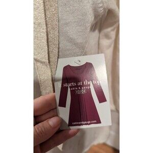 Cable And Gauge Cashmere Blend Bow Neck Sweater Ivory Gold Bow SZ L Coquette