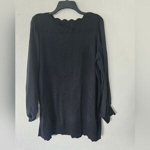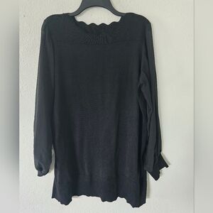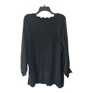 Cable & Gage Women’s Sweater Top Sz 3X Plus Black Scallop Neck Long Sleeve