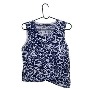 Cable & Gauge Abstract Print Sleeveless Knit Top Sz M Blue White