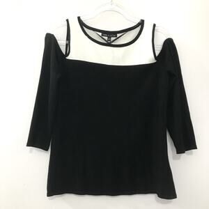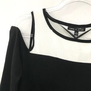 Cable & Gauge Black & Ivory Colorblock Long Sleeve Cold Shoulder Sweater - Small