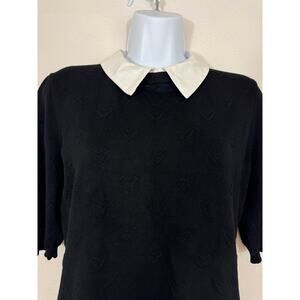 Cable & Gauge Black Knit Puff Sleeve Top with White Collar - Medium
