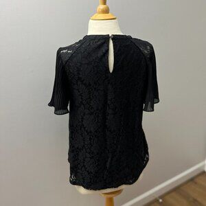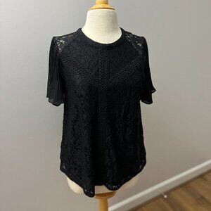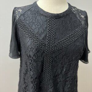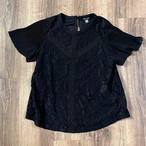 Cable & Gauge Black Lace Top Pleated Short Sleeve Sz L