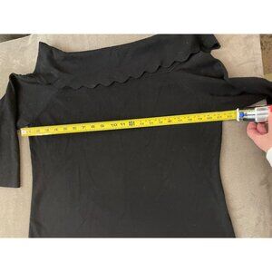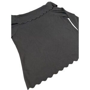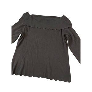 Cable & Gauge Black Off Shoulder Scalloped Hem Long Sleeve Knit Sweater Top Sz L