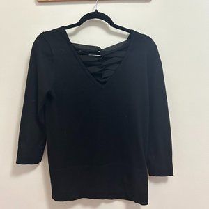 Cable & Gauge Black Sweater with Criss Cross Ribbon Back Detail Size Medium