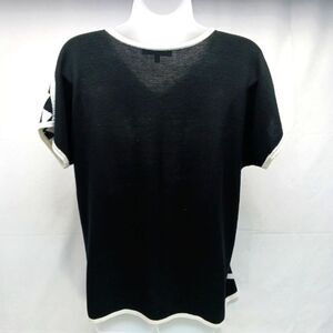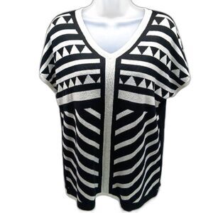 Cable & Gauge Black/ White Geo Print Viscose/ Acrylic Sweater Short Sleeve V-neck Woman's XL.