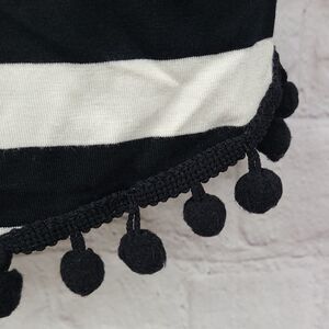 Cable & Gauge Black White Stripe Pom Pom Top Dolman Sleeve Luxe Softness Large