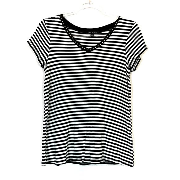 Cable & Gauge | Black White Stripe Tee Shirt Short Sleeve Womens Small