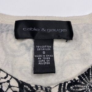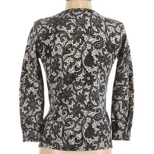 Cable & Gauge Button Down Floral Paisley Black White Cardigan Sweater Size Small
