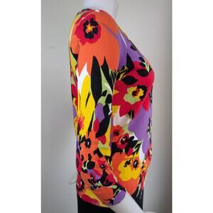 Cable & Gauge Cardigan Small Bright Multicolor Floral Button Lightweight Knit
