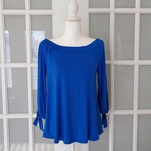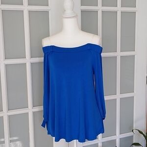 Cable & Gauge Cobalt Blue Off The Shoulder Tie Sleeve Blouse