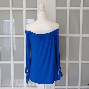Cable & Gauge Cobalt Blue Off The Shoulder Tie Sleeve Blouse