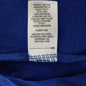 Cable & Gauge women’s top in size Medium in a bold cobalt/royal blue. Easy, flattering popover blouse style with a split V-neck, two front chest pockets, and roll-tab sleeves (wear long or rolled to 3/4). Relaxed, flowy fit that’s great for workwear, office casual, or everyday with jeans.