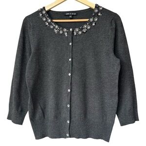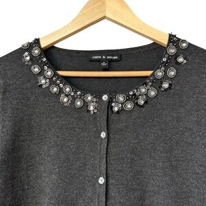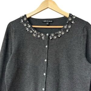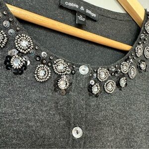 Cable & Gauge Embellished Neckline Cardigan, Size Medium