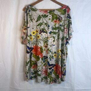 Cable & Gauge Floral Garden Print Split Shoulder Blouse Boho Size XL/1X*