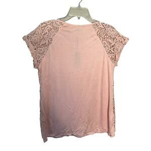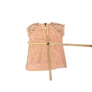 Cable & Gauge Floral Lace Top Short Sleeve Pullover Stretch Pink Size L NWT