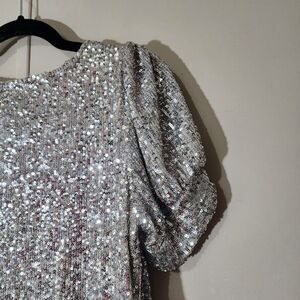 Cable & Gauge Gold Sequin Short Sleeve Puff Dress Size M