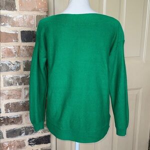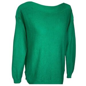 Cable & Gauge Gorgeous Kelly Green Boat Neck Sweater Ribbed Texture Cotton Sz S