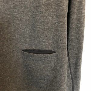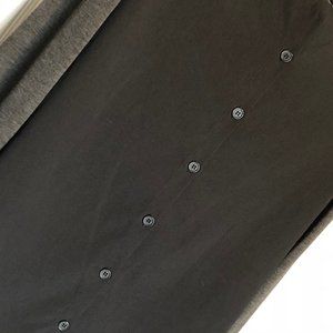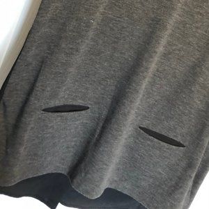 NWT medium crew neck women's hi-low grey sweater with two front pockets. Black sheer button up back. Front 62% polyester, 35% rayon, and 3 % spandex. Back 100% polyester. Super cute!
