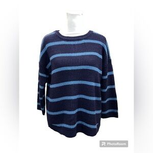 Cable & Gauge Knit Blue Striped Petite Sweater Size M
