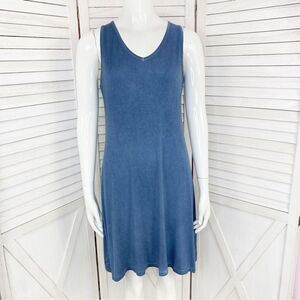 Cable & Gauge Lace Up Back Sleeveless T Shirt Dress Blue XS