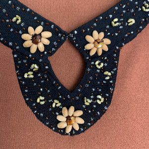 Cable & Gauge, Light Brown Embelished Women's Knit Top, Size L