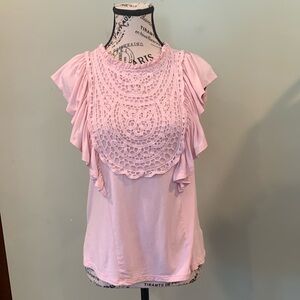 Cable & Gauge Light Pink Ruffle Sleeveless top with Crochet Lace Women’s Small
