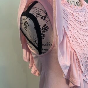 Cable & Gauge Light Pink Ruffle Sleeveless top with Crochet Lace Women’s Small