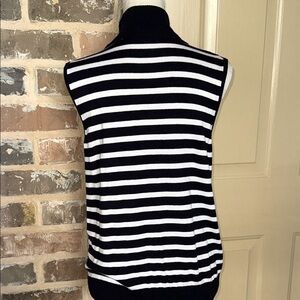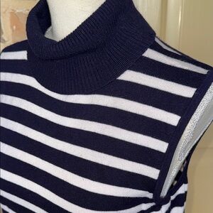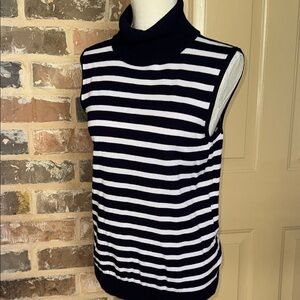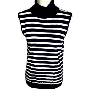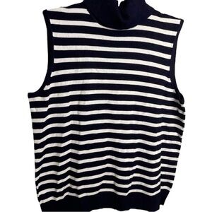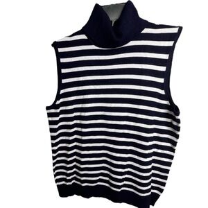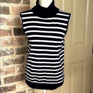 NWOT Stylish sleeveless turtleneck sweater with a true dark navy and white nautical bold stripes. Perfect for layering or wearing solo. Never worn. Approximate measurements in photos. Brand new condition.