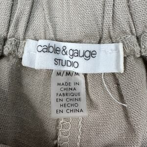 Cable & Gauge Pant Studio Wide Leg WMNS M Tan Linen Blend Elastic Waist Slit Hem